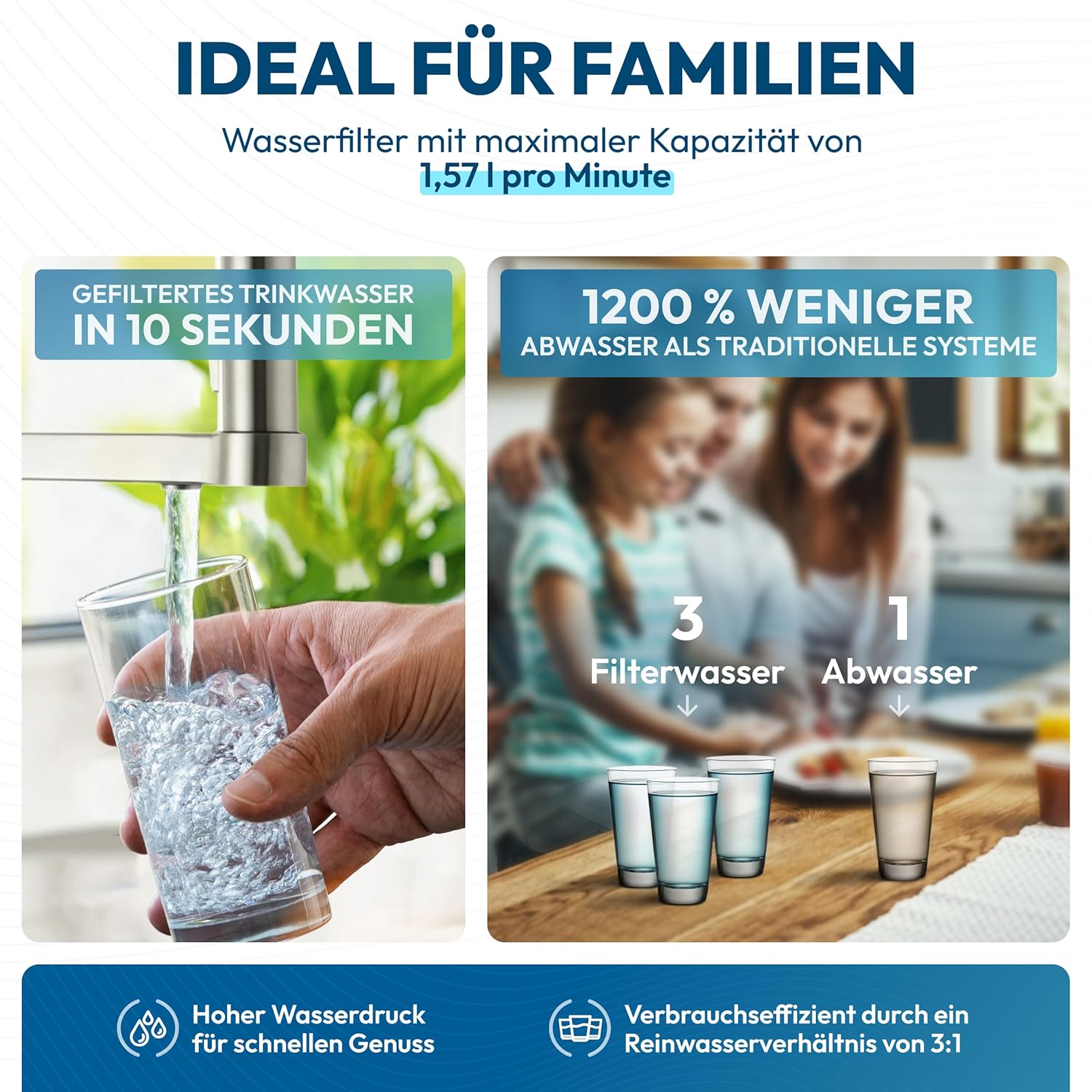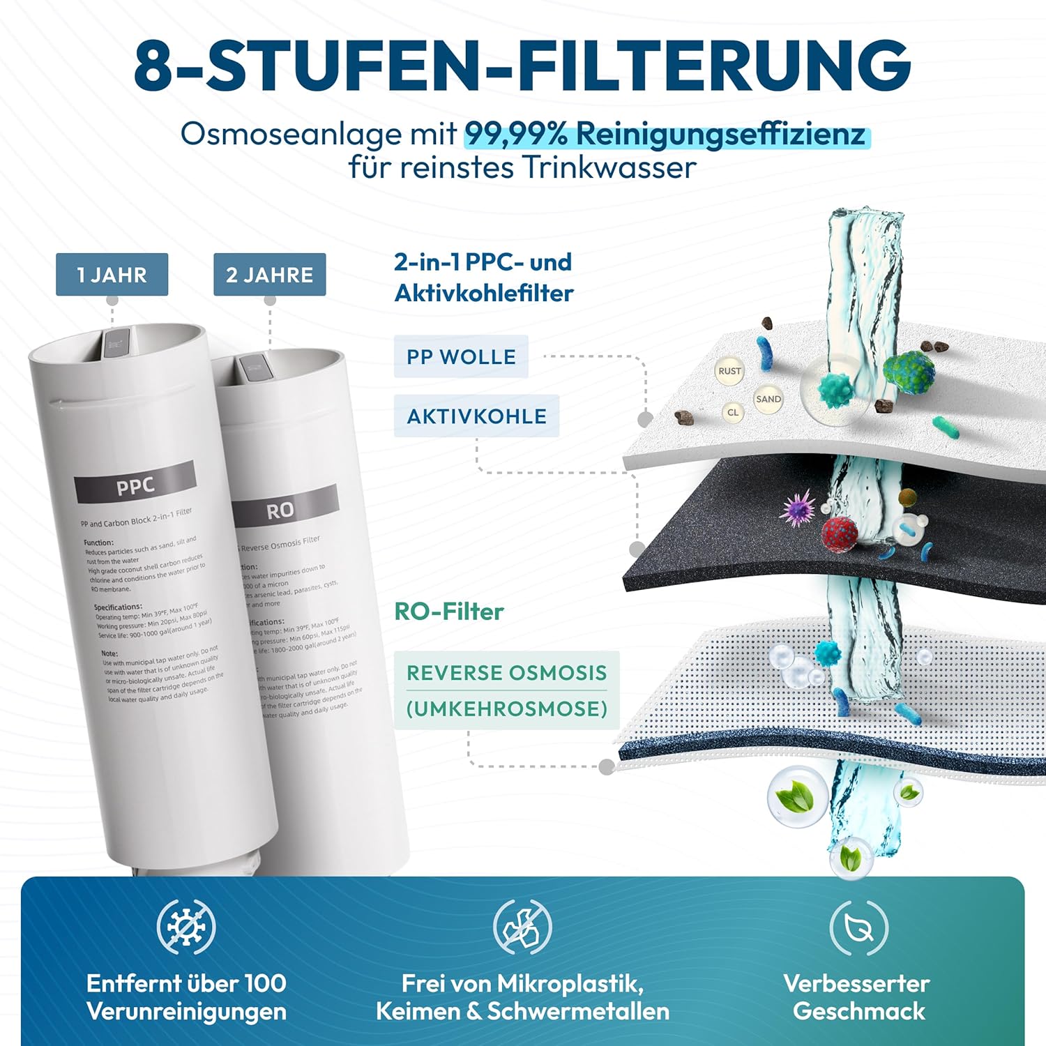 • Entfernt 99,99 % der Schadstoffe: Mikroplastik, Hormone, Schwermetalle, PFAS, Keime