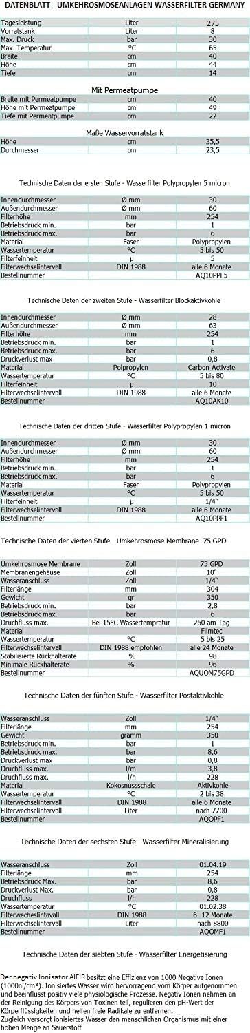 - Tägliche Leistung: 285 Liter reinste Osmosewasser