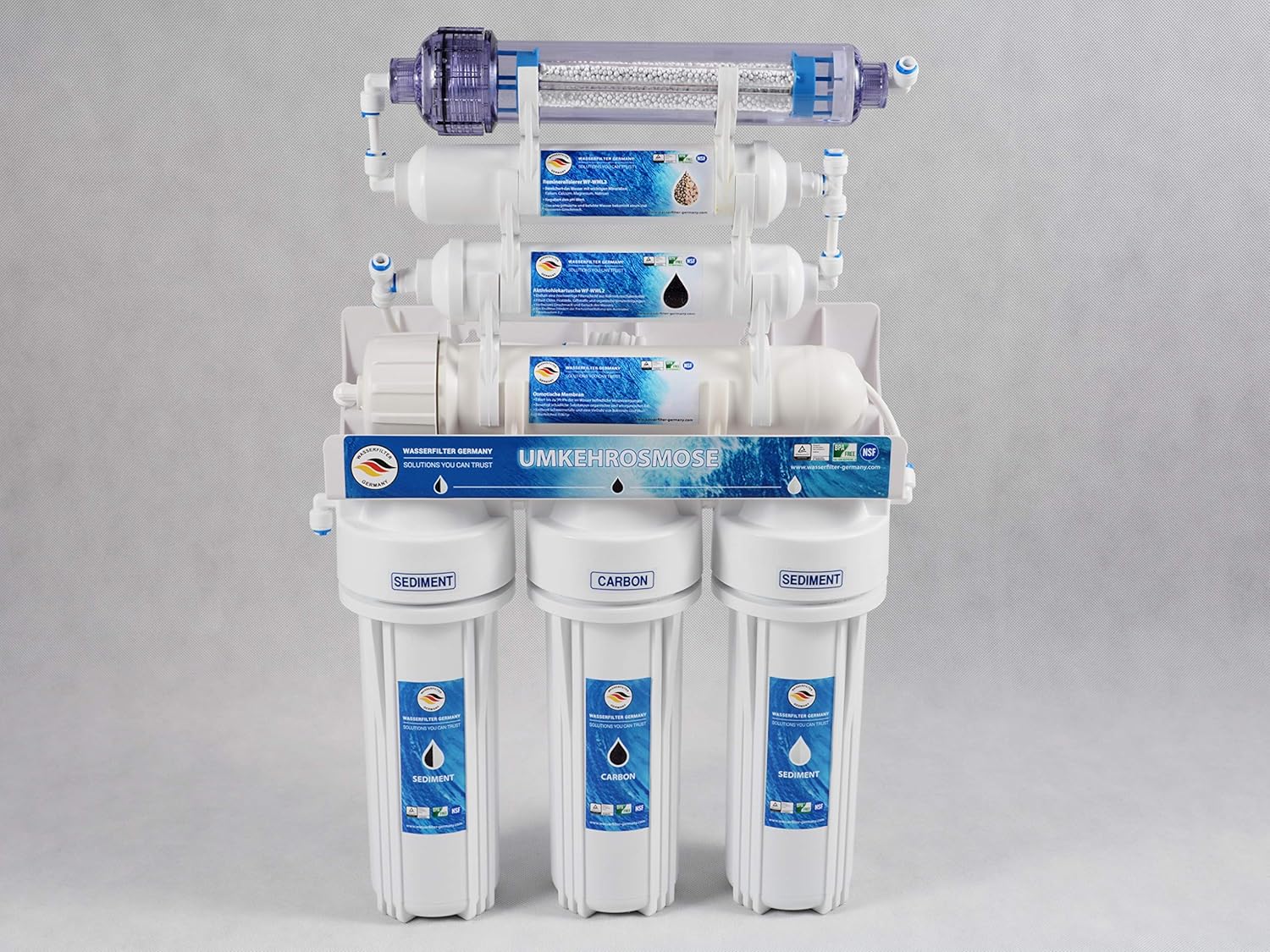 Entdecken Sie das hochmoderne 9-stufige Reverse Osmose Wasserfiltersystem von Waterfilter Germany – für bis zu 285 Liter reinste, gesunde Wasser täglich direkt aus Ihrem Hahn. Mit leistungsstarken 75 GPD USA-Membran und NSF-Zertifizierung garantiert es maximale Reinigung: 9 hochentwickelte Stufen beseitigen Schmutz, Sand, Rost, Viren, Keime, Gerüche und Schadstoffe, während der hochwertige Mineralisator Ihr Wasser mit…