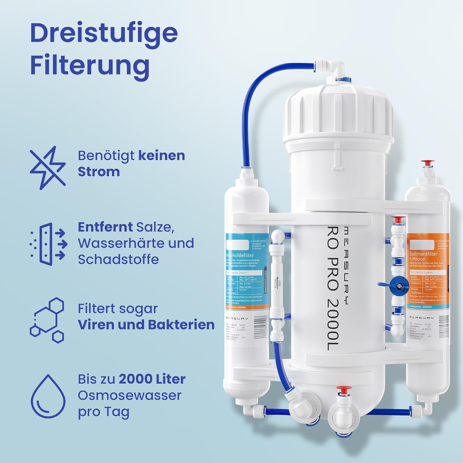 Aquarium Osmose-System von Measury – Präzisionsreinigung für bis zu 2000 Liter Wasser pro Tag