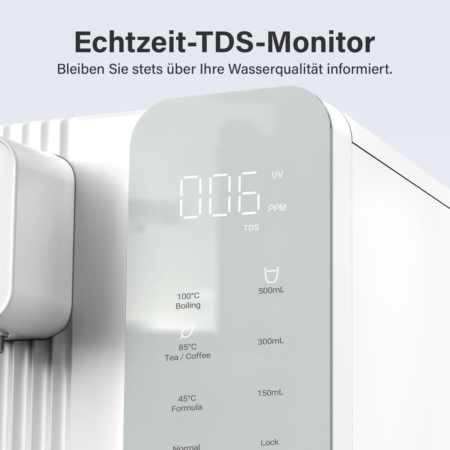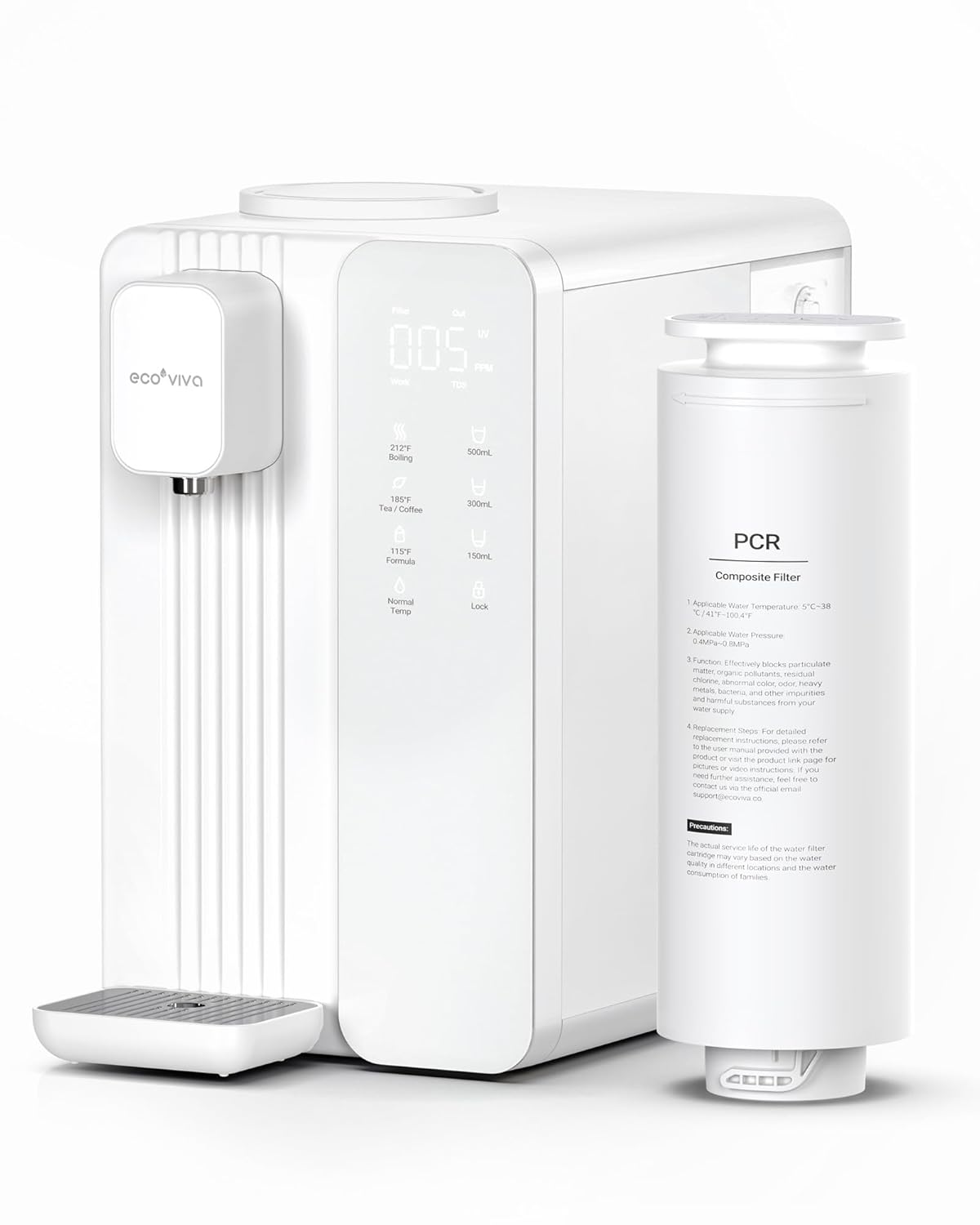 Genießen Sie reines, sicheres Trinkwasser sofort – der Ecoviva UV Countertop Osmosis System entfernt mit seiner 7-stufigen RO- und UV-Technologie bis zu 99,99 % von Schadstoffen wie PFAS, Schwermetallen, Chlor und Nitraten und liefert Wasser, das nicht nur sauber, sondern auch köstlich schmeckt. Mit nur 3 Sekunden Wartezeit fließt kochendheißes Wasser in Ihre Tasse –…