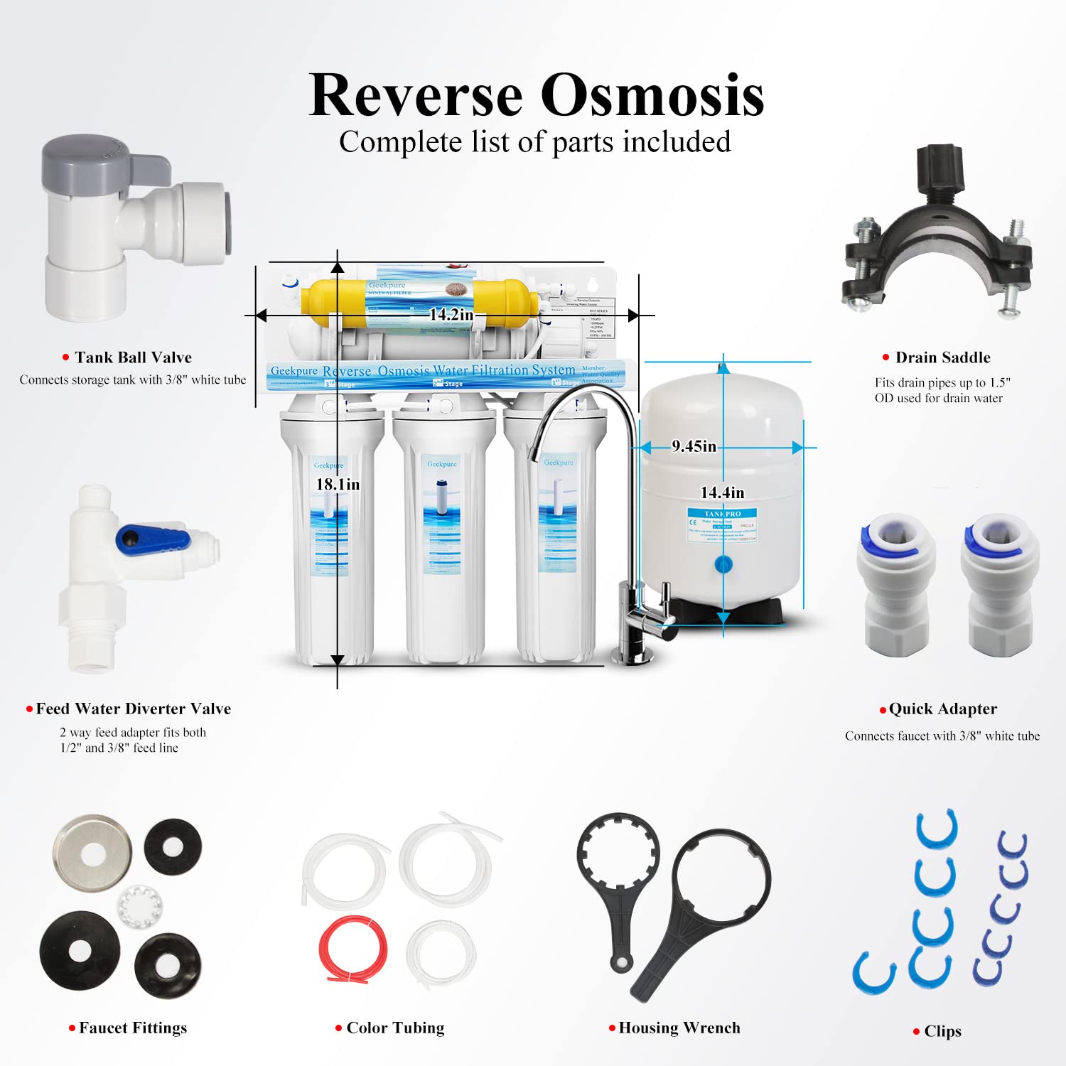 Geekpure 6-Stage Reverse Osmosis Trinkwasseraufbereitungssystem mit Mineral-Remineralisationsfilter – 75 GPD: Die ultimative Wasserreinigung für Ihre Familie