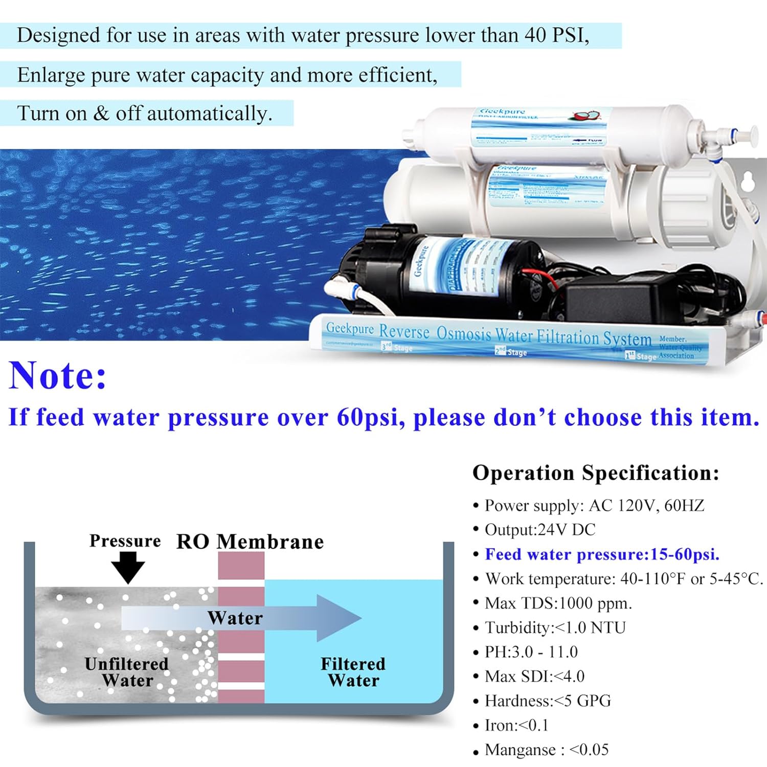Geekpure 75GPD 5-Stufen Umkehrosmose Trinkwasserfiltersystem mit Boosterpumpe & 4 Zusatzfiltern – Die ultimative Lösung für reines, gesundes Wasser zu Hause
