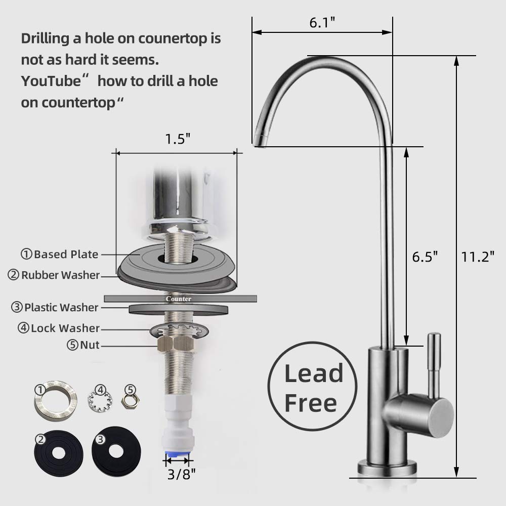 Besonders erwähnenswert ist der mitgelieferte luxus Küchenhahn aus verchromtem Messing mit bleifreier Innenauskleidung. Er ist nicht nur optisch ein Highlight, sondern garantiert, dass das gefilterte Wasser bis zum letzten Tropfen rein bleibt – ohne Rückstände von Blei oder anderen Schadstoffen, die in billigeren Hähnen vorkommen können.
