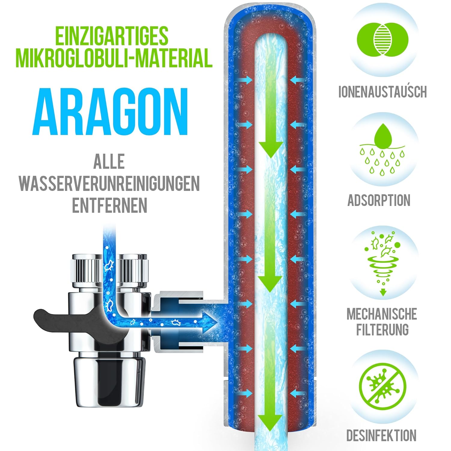 Besonders bemerkenswert ist die Fähigkeit des Aragon®-Filters, auch mikrobiologische Kontaminanten wie Viren und gefährliche Bakterien effektiv zu reduzieren. Dies geschieht durch eine Kombination aus mechanischer Abscheidung aufgrund der extrem feinen Porenstruktur und einer elektrostatischen Anziehung, die Mikroorganismen festhält. Calcium- und Magnesiumsalze, die zur Wasserhärte beitragen, werden gezielt reguliert, ohne das Wasser vollständig zu entmineralisieren – ein wichtiger Aspekt für den Erhalt wertvoller Mineralien im Trinkwasser.