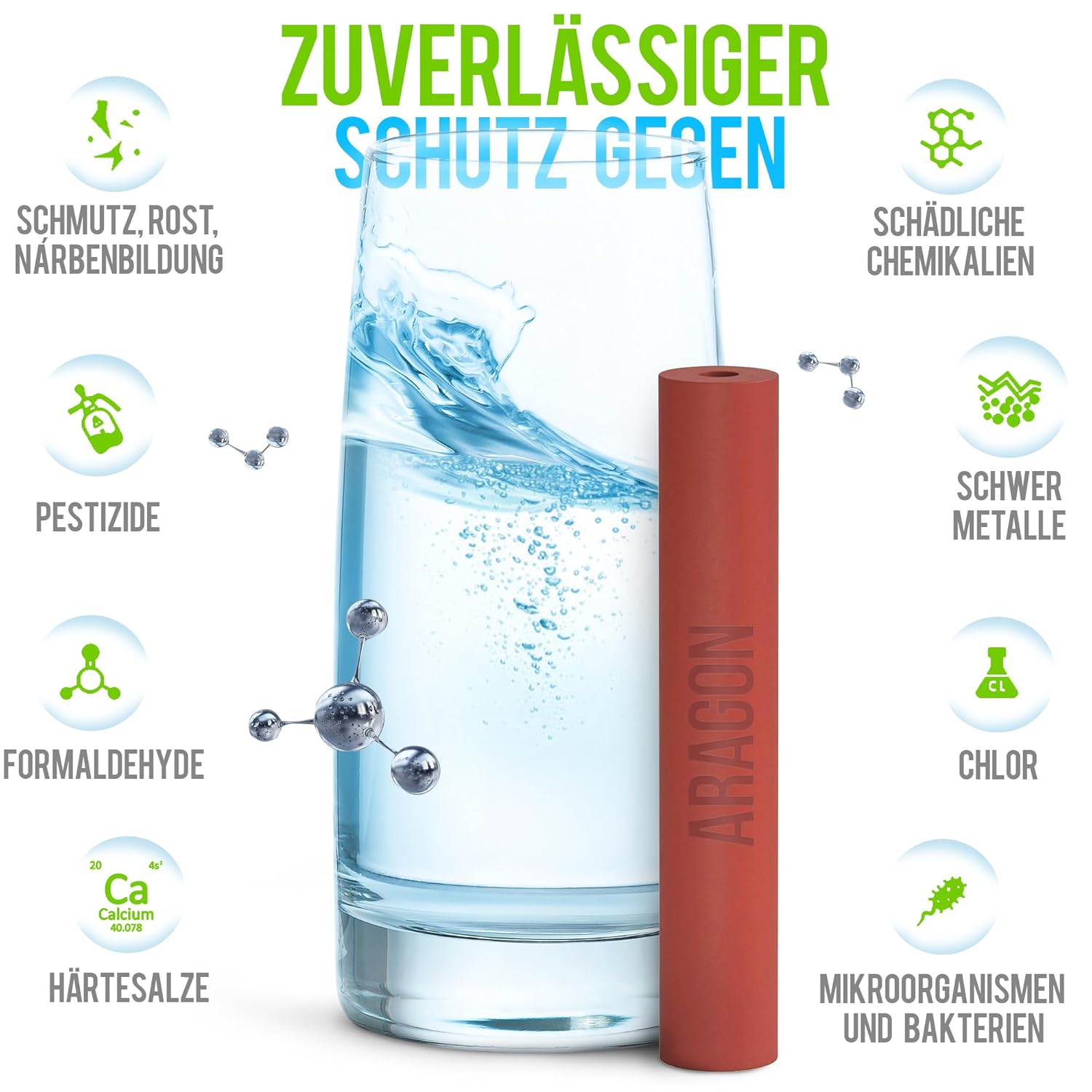 Im Herzen des Geyser Euro Wasserfilters schlägt die patentierte Aragon®-Filterkartusche – ein technologisches Meisterstück, das in puncto Reinigungsleistung Maßstäbe setzt. Diese einzigartige Materialkombination aus hochaktiven Sorptionskomponenten, ionenaustauschenden Harzen und mikroporösen Keramikanteilen ermöglicht eine mehrschichtige Reinigung, die weit über die Fähigkeiten herkömmlicher Aktivkohlefilter hinausgeht.