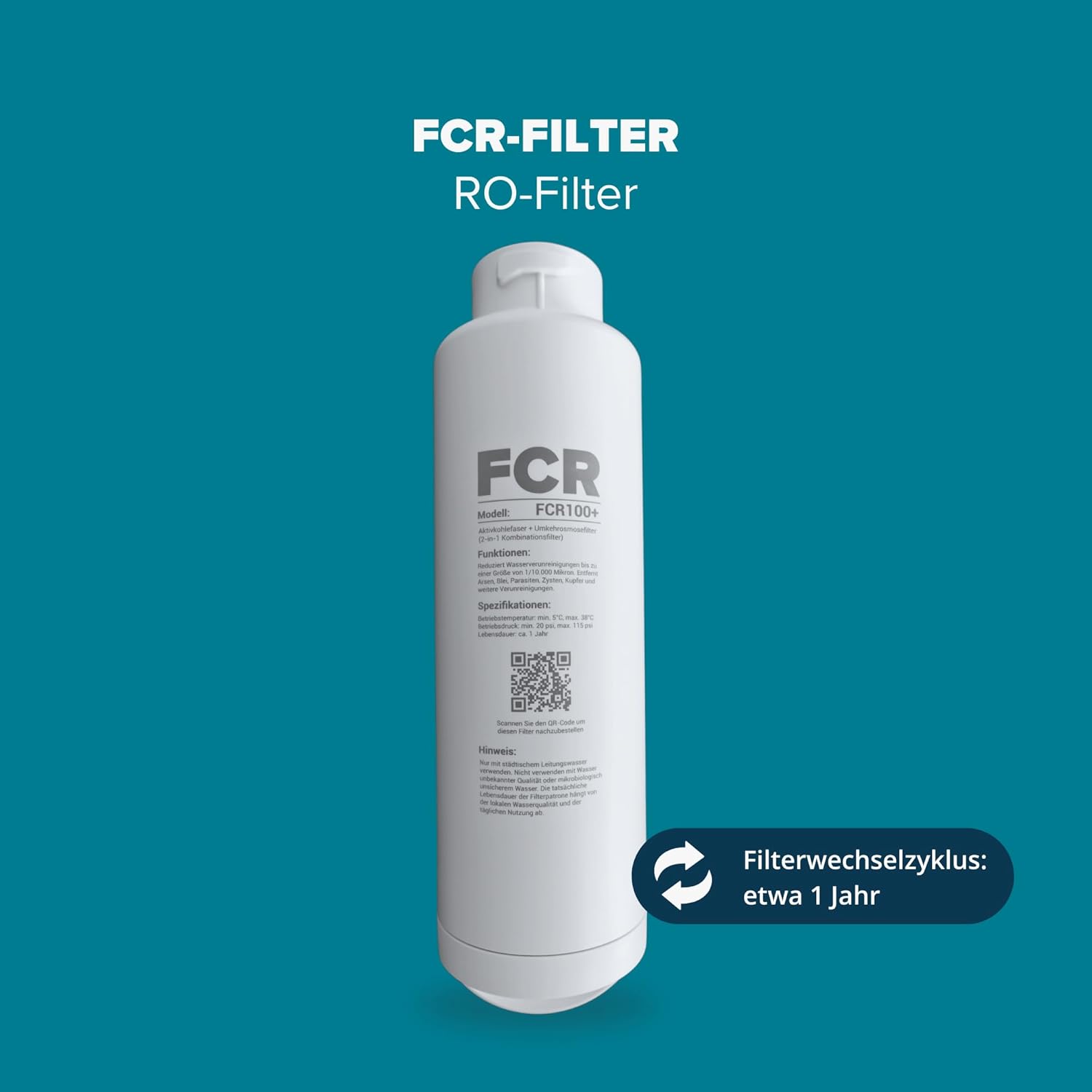 Der FCR100+ ist nicht nur leistungsstark, sondern auch ausgesprochen komfortabel im Dauereinsatz. Mit einer durchschnittlichen Nutzungsdauer von bis zu 12 Monaten entlastet er den Haushalt von häufigen Wechseln und sorgt für Planungssicherheit. Die tatsächliche Lebensdauer hängt von der lokalen Wasserqualität und dem individuellen Verbrauch ab – in Regionen mit weichem, wenig belastetem Wasser kann die Einsatzzeit sogar die 12-Monats-Marke überschreiten. Dank der hochkapazitiven Aktivkohle und der verschmutzungsresistenten RO-Membran bleibt die Filterleistung über den gesamten Zeitraum nahezu konstant.