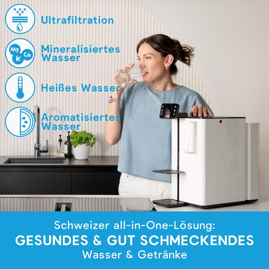 Stellen Sie sich vor, Sie zapfen morgens frisches, kristallklares Wasser, das so rein ist wie Quellwasser aus den Alpen – und das direkt in Ihre Küche. Kein Plastik, keine Kisten schleppen, kein Kompromiss bei der Qualität. Ob zum Kochen, für den perfekten Tee oder als erfrischendes Getränk für die Kinder – das LANG System liefert Wasser auf Knopfdruck, das nicht nur sicher, sondern auch geschmacklich überzeugt. Dank intelligenter App-Steuerung und Touchscreen-Display können Sie Temperatur, Mengen, Mineralgehalt und sogar Geschmacksintensität individuell einstellen. Dies ist nicht einfach nur ein Wasserfilter – es ist ein ganzheitliches Trinkwasserkonzept, das Gesundheit, Komfort und Nachhaltigkeit in Einklang bringt.