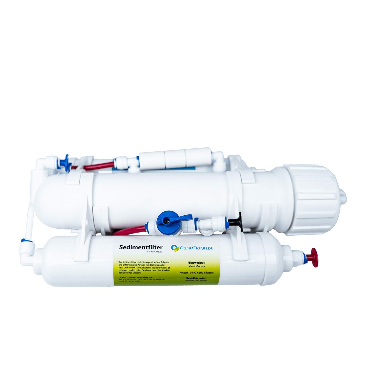 - Filterstufen: 3 (Sediment, Aktivkohle, Osmosemembran)