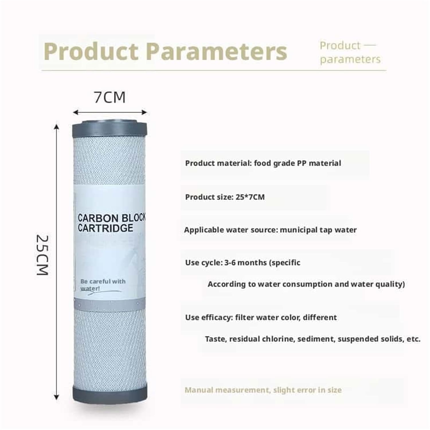 • Material: Hochverdichtete Aktivkohle aus Kokosnussschalen, lebensmittelechter Kunststoff