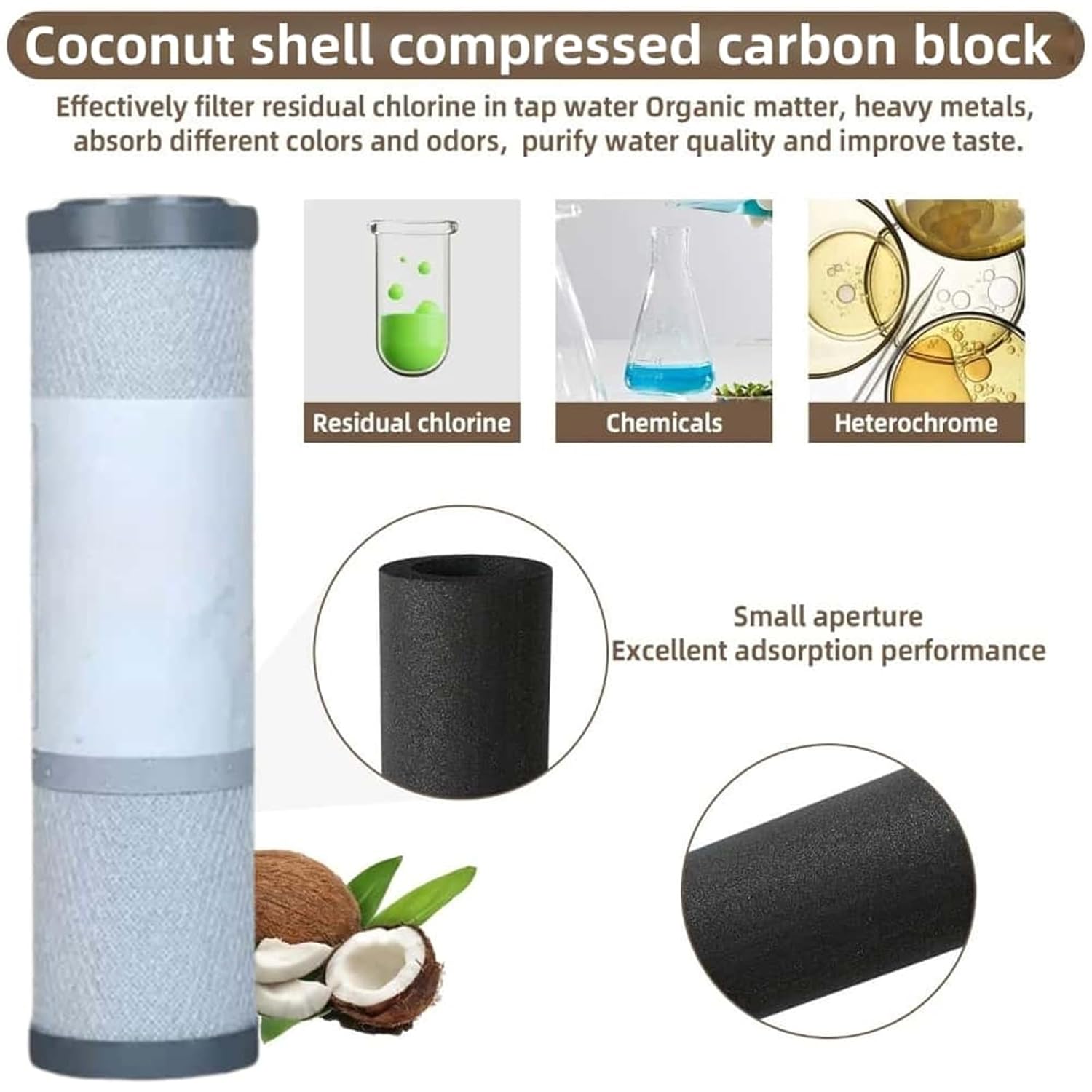 Pack of 4 Haushaltswasserfilter Kokosnuss-Kohleblock 10 Zoll für Ganzhaus- und Umkehrosmoseanlagen