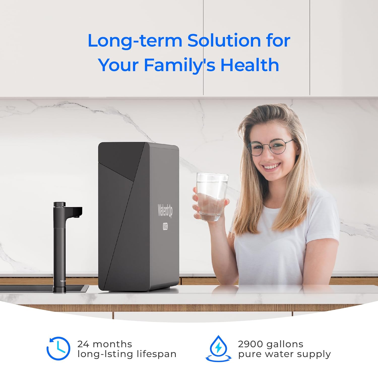 Die hohe Tageskapazität von 1600 GPD bedeutet, dass das System auch bei gleichzeitigem Verbrauch – etwa wenn mehrere Personen zur selben Zeit Wasser entnehmen – nicht an seine Grenzen stößt. Ob Sie den Wasserkocher füllen, das Gemüse dämpfen oder die Flasche für den Sport füllen – das System hält mit.